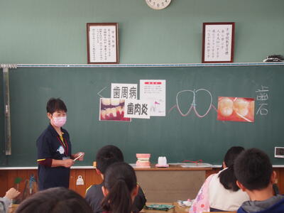 歯科指導 投稿: 高久小学校 (11:58) 11月7日(金)に、4年生から6年生を対象に、歯科衛生士の和田さんをお招きし、歯科指導を行いました。デンタルフロスを用いた歯石除去の仕方や歯ブラシを使った正しい歯磨きの仕方について学びました。今のうちから、歯を守る習慣をしっかりと身に付けてほしいと思います。 Tweet 0 -