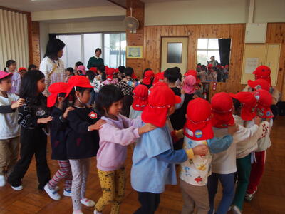 幼保小連携~1年生と年長児との交流~ 投稿: 高久小学校 (14:48) 10月29日(水)に、高久小1年生となすのそら保育園、那須高原保育園、黒田原第2保育園、みふじ幼稚園、若葉幼稚園の年長児との交流会を実施しました。1年生たちが考えた遊びやゲームをとおして、仲良く交流することができました。1年生の成長が見られました。参加いただいた幼稚園、保育園の皆様には、心から感謝申し上げます。 -