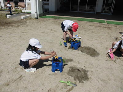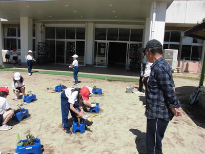 5月8日 2年生が野菜の苗を植えました。