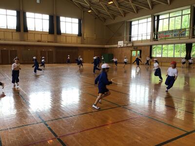 その後は、レクリエーションです。「けいどろ」と「だるまさんが転んだ」で楽しく遊びました。