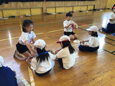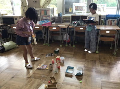 飛ばしたり、積んだり、並べたり・・・様々な工夫をしながら、みんなで楽しく遊ぶことができました。次は、集めた物を使っておもちゃ作りに挑戦します!どんなおもちゃができるかな?