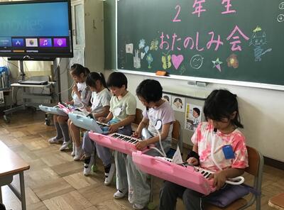 5月29日には、進級お祝いの会を行いました。学級活動で話し合い、「出し物」と「プレゼント交換」をすることにしました。出し物は、「クイズ」「鍵盤ハーモニカの演奏」「ダンス」です。互いに声をかけ合って、本番に向けて練習に取り組みました。