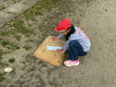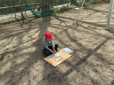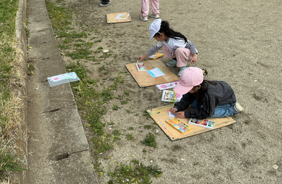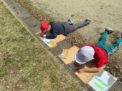 風がちょっぴり強くて、画用紙が風に飛ばされて追いかけました。