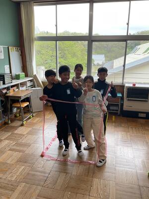 算数では体積の学習をしています。スズランテープを使って1㎥を作りました。