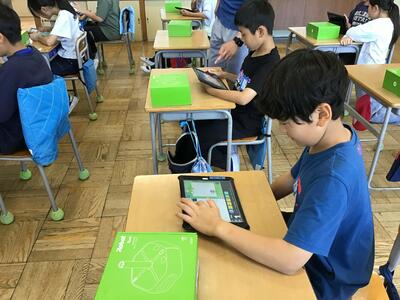 さすがは5年生。タブレットを自在に操って、分かりやすくまとめることができています。