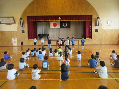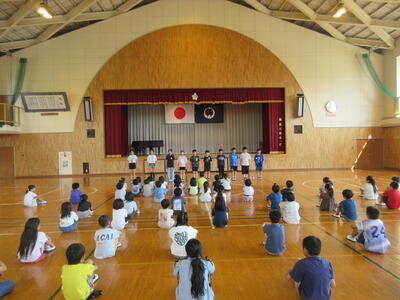 6月19日(木)の朝会で、5年生が群読を行いました。「○○をとる」というフレーズに動作を付け加え、分かりやすく発表していました。素晴らしい発表でした!