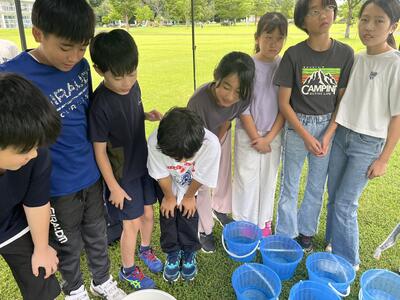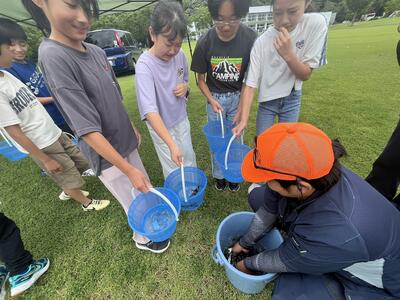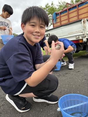 最初はさわるのを怖がっていた子どもたちも、活動終盤には自分からウグイをつかんで、いけすからバケツに移し替えていました。
