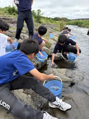 去る7月11日に余笹川ふれあい公園でウグイの放流を行いました。